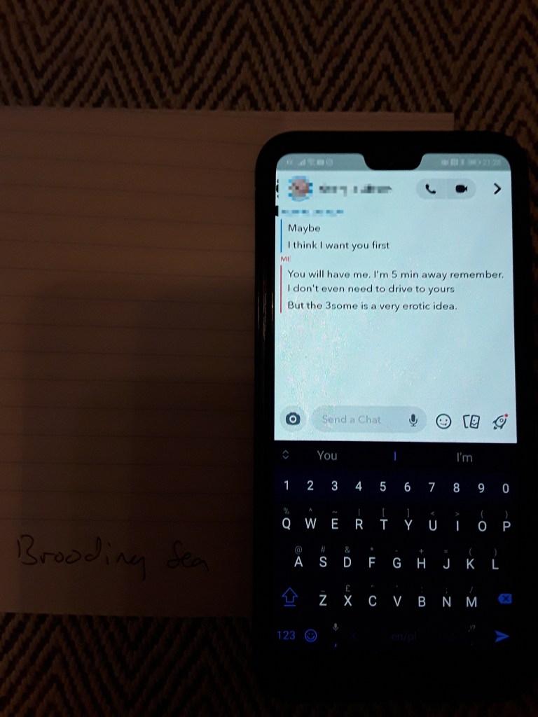 So last night I thought I’d push the scope of what is possible. We are both on the same page in terms of wanting sex, but not to ask for anything more. Lots of guys obviously are terrified of setting this frame early because they counter-intuitively conclude that all women want their sex with a relationship commitment. We started discussing threesomes. Check snapchat below: