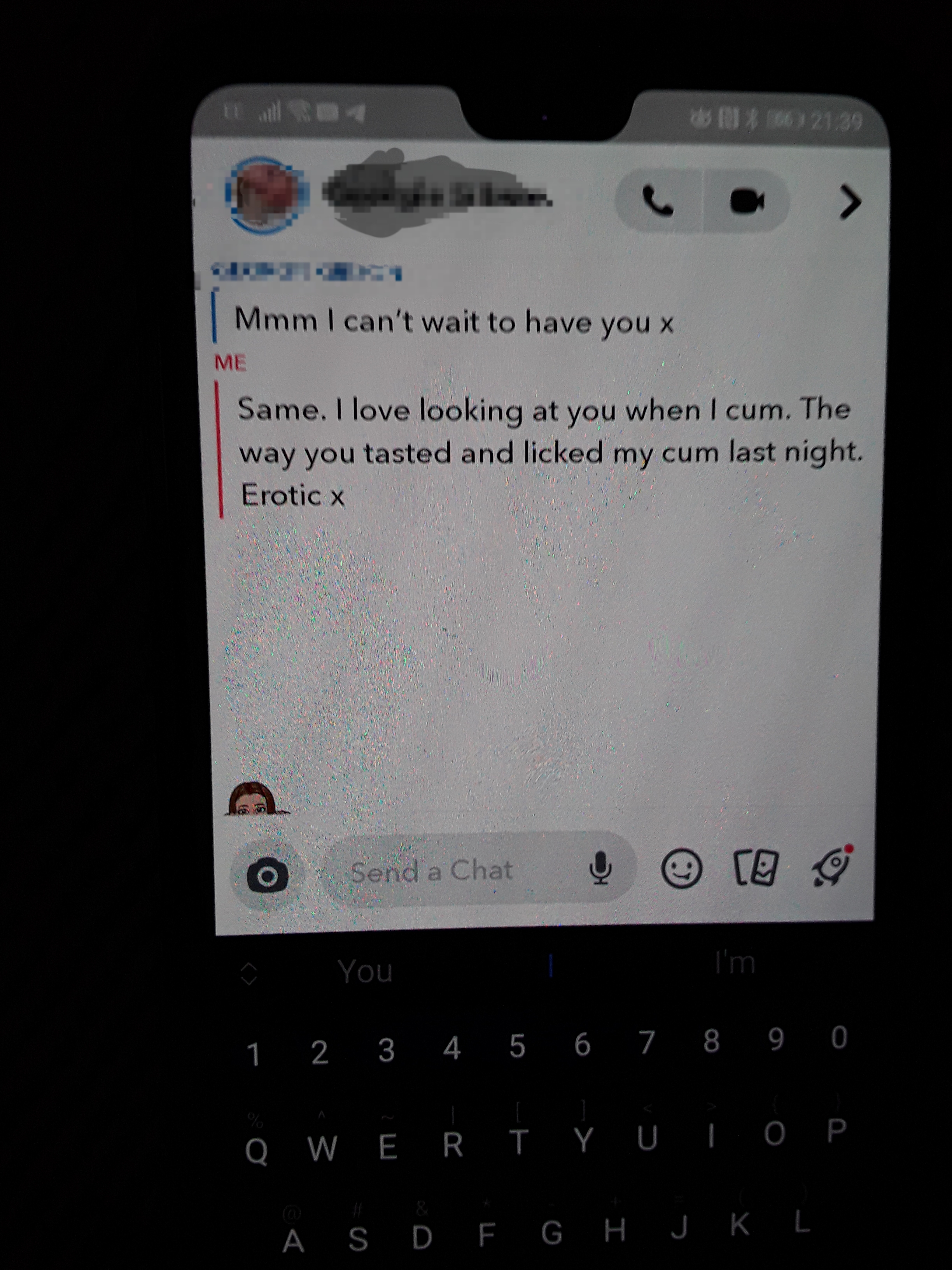 Fast forward to Monday. We had spoke a bit across the day and it turned out she lives within walking distance from my house. I sent her a snapchat (she wanted to send some more suggestive pictures but only via this medium) and I simply and directly told her I was coming to see her that night. She was on her period but I told her I’d bring a bottle of wine and I expected a blowjob. It was always on. She was very horny and we had arranged to meet this Friday anyway, but I wanted to push forward.